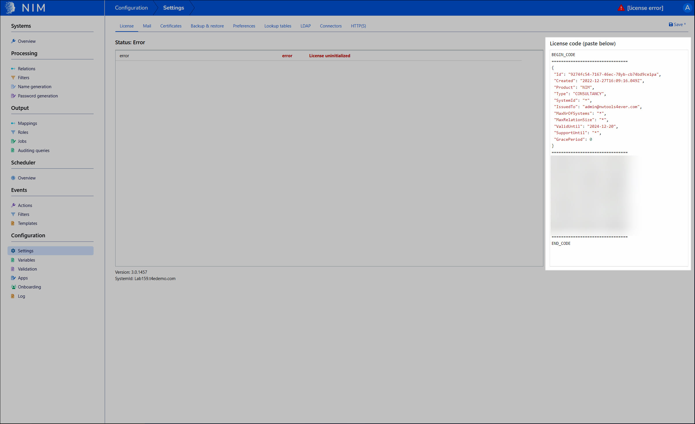 If you just installed NIM for the first time, you'll see a [license error] message in the upper-right hand corner of the screen.
