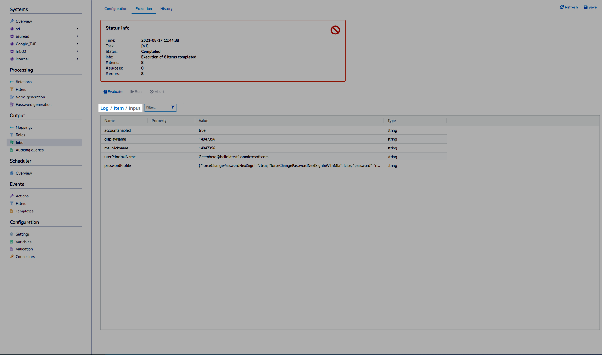 View Job Result button in the History pane.The results are returned in the Log pane.